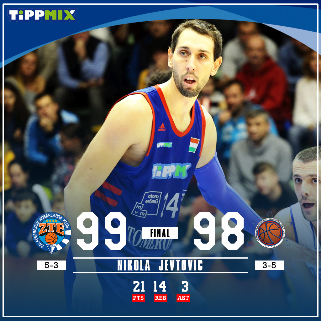 Az utolsó 10 percet remek védekezéssel kezdte a ZTE, de Jevtovic, Kovács és Bojan kosaraival tartani tudtuk az iramot, sőt 5 ponttal el is léptünk 6 perccel a vége előtt. A folytatásban több sikeres offenzívát indítottunk a hazaiak ellen, így 7 pontos előnnyel fordultunk az utolsó percekre. (83-90) Kovács Ákos továbbra is remekelt, előbb egy középtávolit, majd egy nagyon fontos ziccert dobott be, ráadásul ezt követően kivédekeztük a 24 másodpercet és a fáradó, kapkodó ZTE ismét kosár nélkül zárta a támadását. Úgy tűnt, hogy mi azonban bekapcsoltuk a tartalék energiaforrásainkat, Jevtovic megdobta a 21. pontját is egy sikeres tempónak köszönhetően. (89-96) Az utolsó percet a hazaiak támadással kezdhették és Agafonov kosaraival fel is zárkóztak egyetlen pontra. Trajkovski tökéletesen használta ki a ZTE védekezésbeni hibáját, amire a másik oldalon rögtön jött a válasz. (97-98) Evans létfontosságú triplája lecsorgott, a Zalaegerszeg a győzelemért indíthatta a támadást, az utolsó előtti passzot Faust majdnem lefülelte, de Gliebovhoz került a labda és nem hibázott a palánk alatt. (99-98) 1,2 mp maradt az órán, az oldalvonalról jöhettünk, az elzárások után Trajkovskihoz került a labda, de nem volt jó a hármas, így 1 ponttal maradtuk alul Zalaegerszegen.