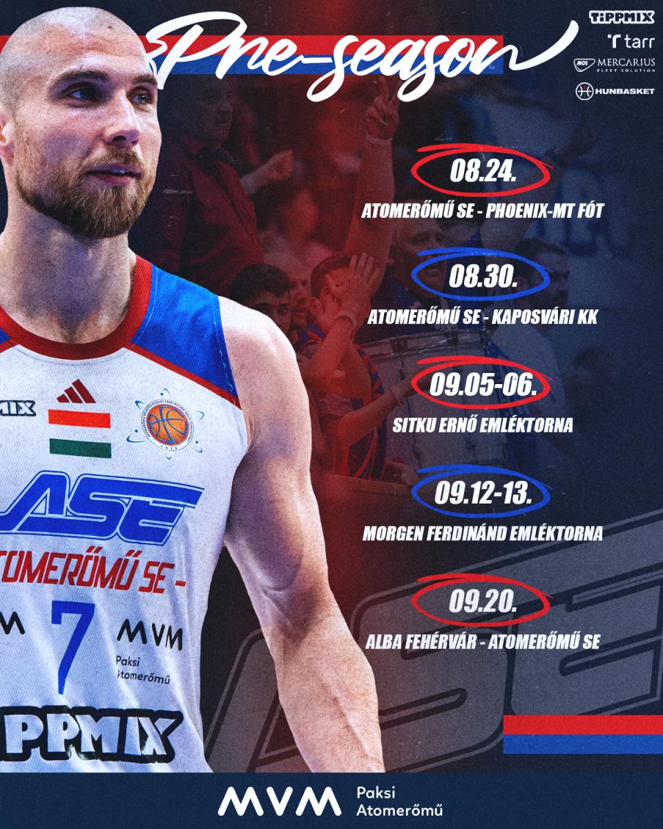 Aleksandar Joncevski vezetőedző, Fodor Ármin másodedző és Marko Orsag erőnléti edző irányításaival csapatunk augusztus első heteiben kezdi meg a felkészülést a 2025/26-os bajnoki évadra. A sűrű edzésprogram mellett az első felkészülési mérkőzésünket augusztus 24-én az NB I. B.Piros csoportjában tavaly ezüstérmet szerző Phoenix-MT Fót ellen fogjuk játszani, majd a frissen feljutó Kaposvár gárdáját fogadjuk.