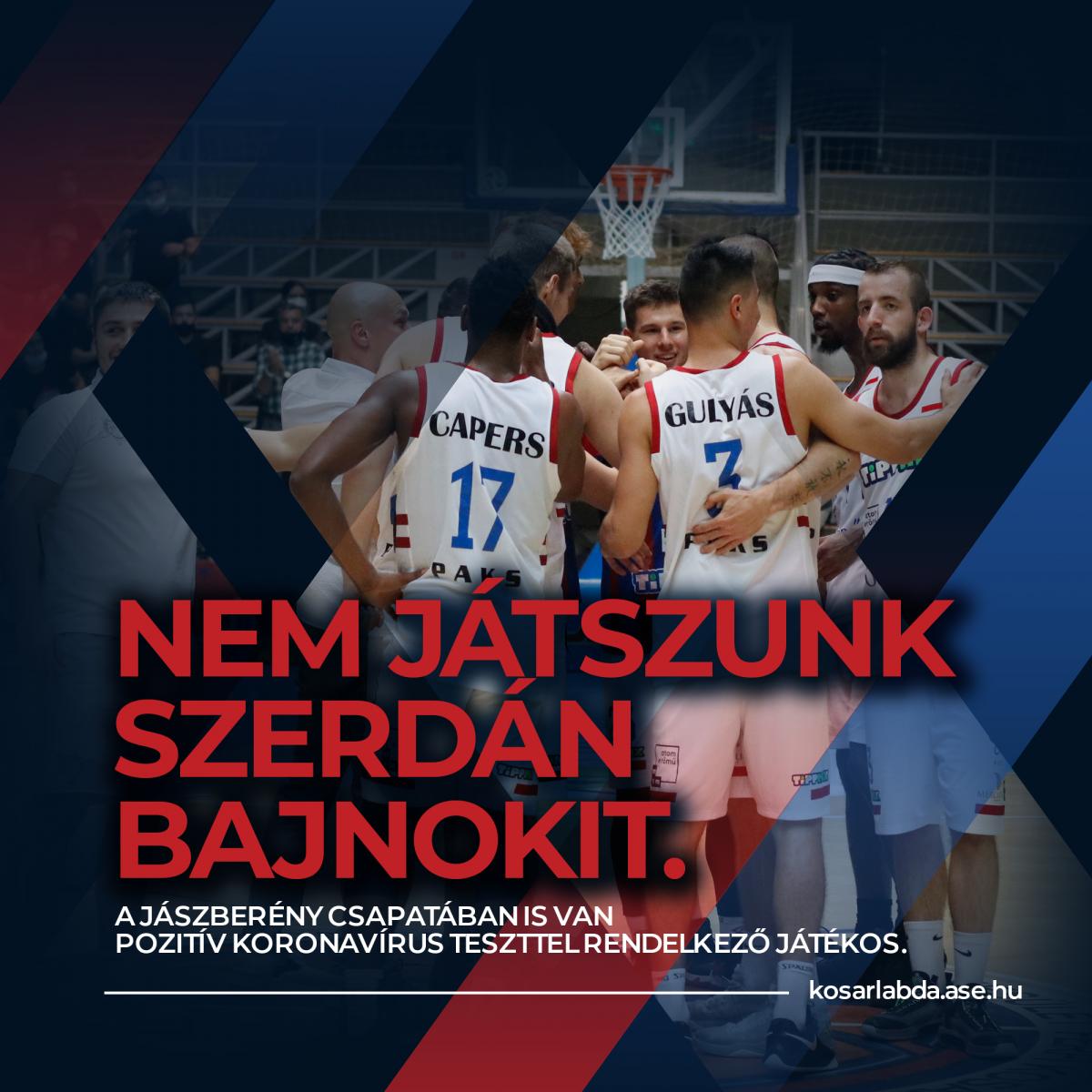 A Jászberény csapatában is van pozitív koronavírus teszttel rendelkező játékos, ezért a szerdai mérkőzésünk elmarad az ASE Csarnokban.